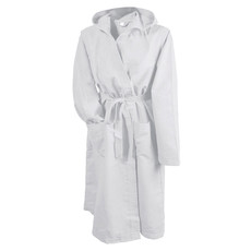Accappatoio in microfibra con cappuccio, confezionato in tracolla con zip.