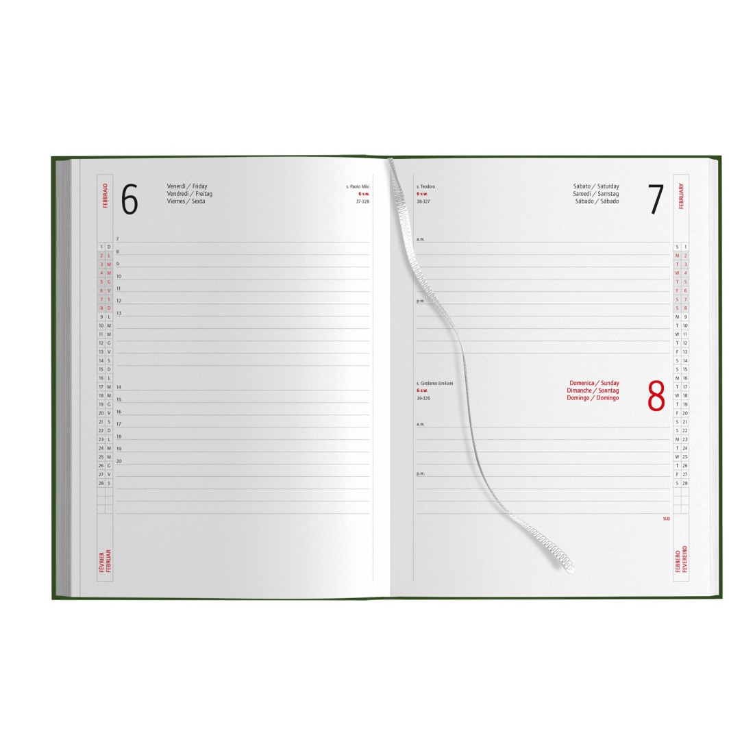 Interno giornaliero stampato in carta bianca a 2 colori. 320 pag. sabato e domenica abbinati.