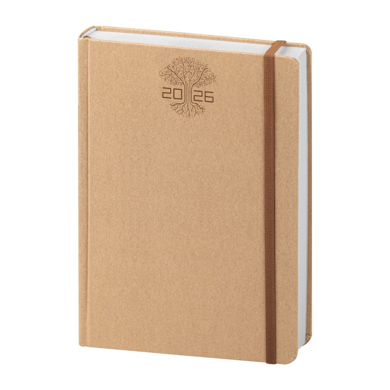 Agenda giornaliera 2026 ECO, in carta naturale, con elastico.