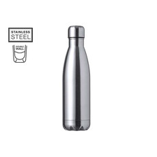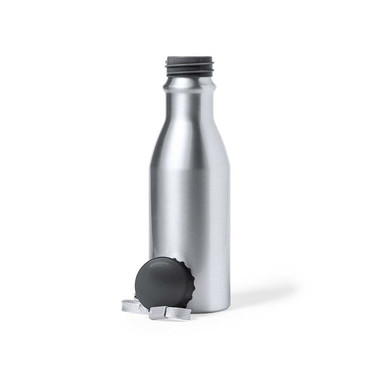 Borraccia da 500 ml, in alluminio con fintiura lucida. Tappo originale a vite nero e e cinghia per il trasporto. BPA free e confezionato singolarmente in una scatola kraft.