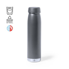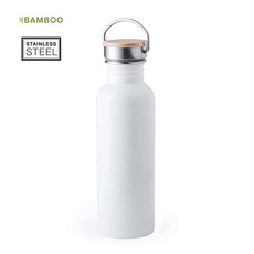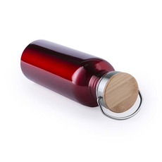 Borraccia della linea natura da 500 ml. Realizzato con fusto in vetro e tappo a vite in bambù, con una pratica maniglia per il trasporto in corda intrecciata di colore naturale. Include una cover di sughero naturale. Confezionato singolarmente in una scatola dall'attraente design ecologico.