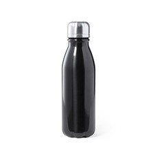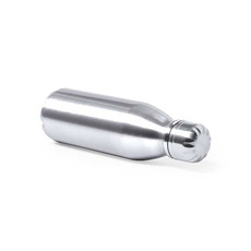 Bottiglia bicolore in acciaio inossidabile e fascia in gomma con moschettone.