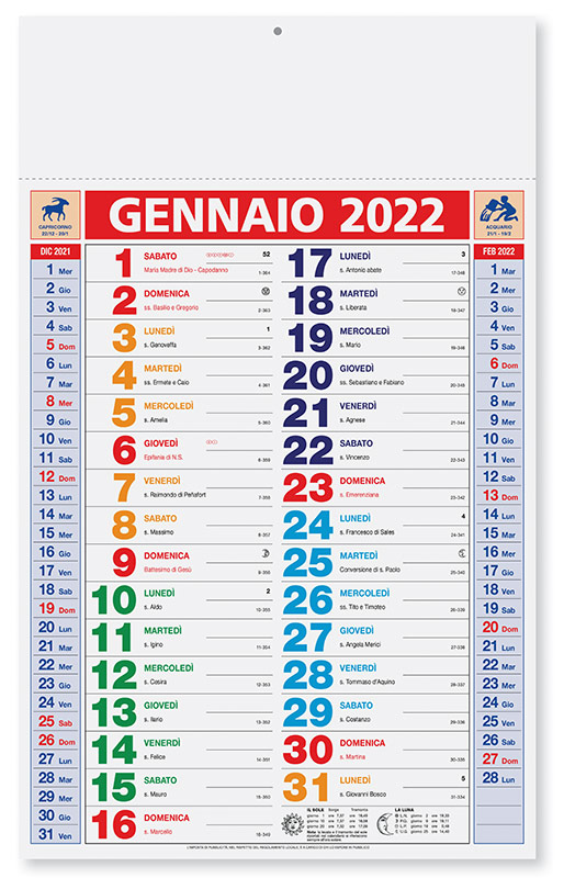 Mensile 12 fogli. Carta patinata 70gr. Testata termosaldata.