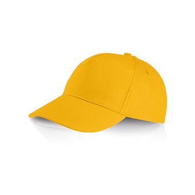Cappellino 5 pannelli con visiera precurvata , tergisudore lungo tutto il bordo, fodera interna su pannello frontale, cuciture interne coperte e chiusura in velcro.