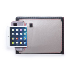 Custodia per computer in poliestere 600D RPET, ricavata da plastica riciclata, per promuovere il riutilizzo dei rifiuti plastici e contribuire alla sostenibilità del pianeta. Con chiusura magnetica e etichetta RPET. Interno pieghevole con tappetino mouse e supporto inclinato per computer. Presentata in una scatola di design individuale.
