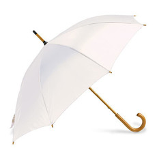Ombrello automatico a pulsante con manico curvo in legno e astuccio in tinta