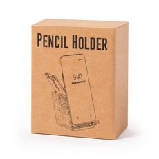 Portapenne della linea natura realizzato in feltro RPET, con porta smartphone in bamboo. Con etichetta feltro RPET e presentato in una scatola di design kraft individuale.