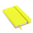 Quaderno con 90 pagine avorio a righe, copertina rigida in colore fluo, elastico di chiusura e segnapagina in tinta.