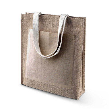 Shopper in iuta con manici e tasca frontale in cotone.