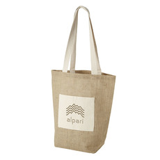 Shopper alla moda con pannelli laterali in canvas 280 g facilmente stampabili, caratteristico design in iuta laminata resistente all'usura e manici in cotone.