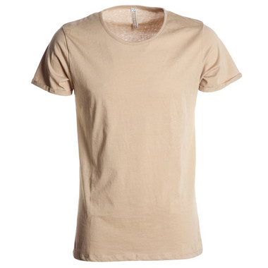 T-shirt manica corta con girocollo leggermente ampio con bordino fine, maniche corte e strette finite con fine risvolto, cucitura laterale per una vestibilità più precisa.