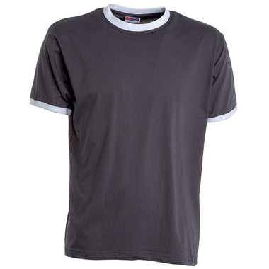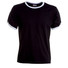 T-shirt girocollo manica corta, bicolore, colletto a contrasto in costina misto spandex da 2.3 cm con cucitura ribattuta sul davanti, nastro di rinforzo da spalla a spalla, struttura tubolare.