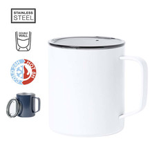 Tazza da campeggio in acciaio inossidabile con manico a moschettone colorato.