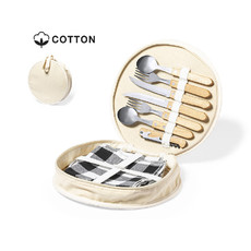 4 cucchiai, 4 coltelli e 4 forchette in acciaio inox con manico in PP bianco.